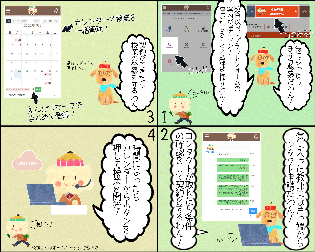 4.チャット機能を使い、家庭教師の契約の際に必要な「料金の確認」、「指導可能な時間の確認」などを行ってください。問題がなかったら契約を行います。